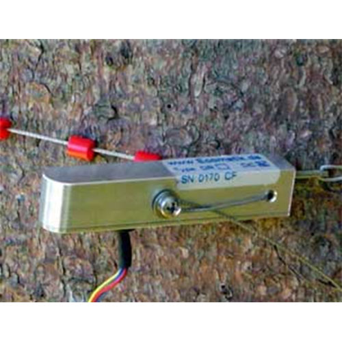 DC1是測(cè)量植物周長(zhǎng)變化的簡(jiǎn)單版本。傳感器通過(guò)一個(gè)由熱膨脹系數(shù)低的合金制成的鋼絲繩固定在樹上。用小塑料環(huán)減少鋼絲繩對(duì)樹的壓力,并減少摩擦阻力,大大提高靈敏度。