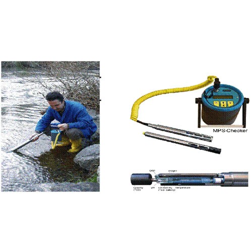 工作原理:系統(tǒng)采用Checker讀數(shù)表作為數(shù)據(jù)處理單元, 采用MPS-D3、MPS-D8或MPS-K16多參數(shù)組合傳感器測(cè)量水質(zhì)參數(shù)。上述兩部分組成一套便攜式測(cè)量系統(tǒng)。