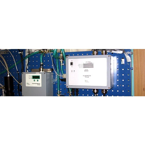 FFL-2012藻類在線監測系統用于在原位連續監測淡水和海洋中光合微生物的熒光。運用快速熒光重復測量技術(FRRF)對光合體系II (σPSII)功能吸收截面積、PSII能量傳遞、F0、F’0、FM、F’M等,根據這些變量,能夠對光系統PSII電子傳送速率(Pe)進行實時估量。這些測量值可以用來評估環境模型中浮游植物的生產力。