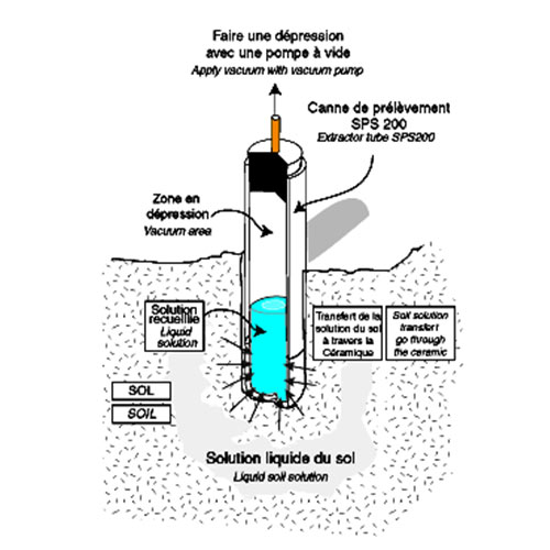 原理:多孔陶瓷頭安裝在一段空PVC管的底部,該管子插入土壤中來收集土壤溶液,通過給PVC管一定的負壓,土壤中可自由移動的水分透過多孔陶瓷頭進入管中,一段時間后,通過真空泵,將收集到的溶液再轉移到收集瓶中。然后把收集瓶帶回實驗室分析土壤溶液成分。SPS200土壤溶液收集系統的多孔陶瓷頭有兩種類型:31mm直徑和63mm直徑,后者收集的土壤溶液是前者的2倍。